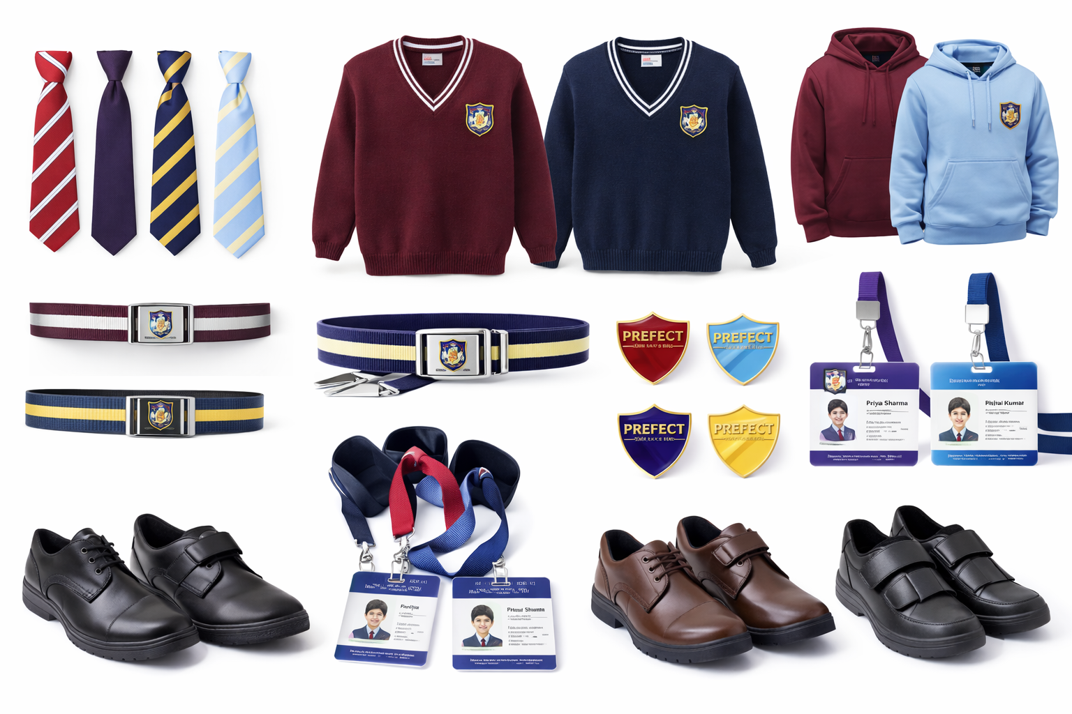 We supply premium school accessories including socks, belts, ties, sweaters, ID cards, badges, and footwear — ensuring consistency across every detail.